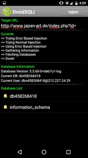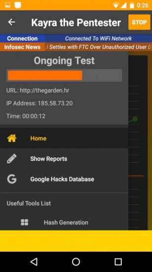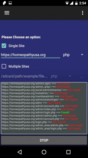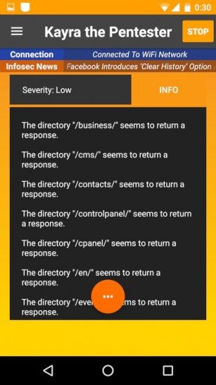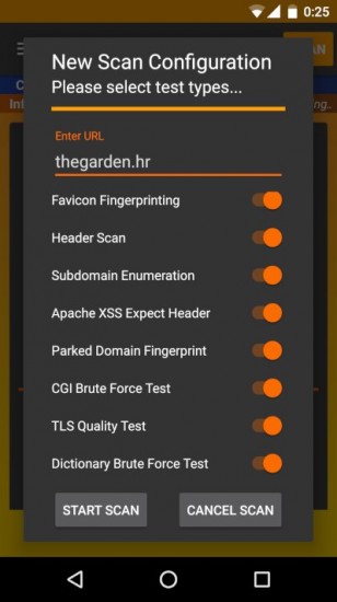 Мобильный сканер уязвимостей веб-приложений. Ищет типичные ошибки в конфигурации указанного веб-сервера и пытается получить листинг каталогов (обычно — успешно). Среди дополнительных инструментов есть генератор хешей и дешифровщик AES.