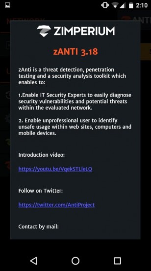С тех пор как Маргарителли устроился в компанию Zimperium, наработки dSploit вошли в состав фирменной утилиты zAnti.