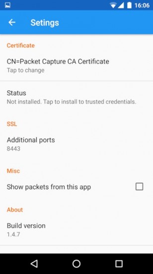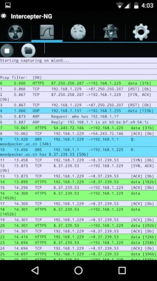 Более простой и «легальный» анализатор TCP/UDP-пакетов с возможностью перехвата HTTPS-сессий посредством MITM. Не требует прав root, поскольку использует встроенную в Android функцию проксирования трафика через VPN и подмену SSL-сертификата.