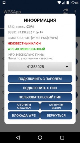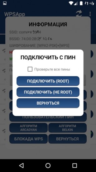 С момента выхода той статьи WPSApp обновилась и стала лучше во всех отношениях. Она знает больше пинов разных вендоров, быстрее перебирает их и научилась брутфорсить в новых режимах. Утилита работает как на рутованных смартфонах, так и без прав root. У нее много аналогов, но все они куда менее эффективные.