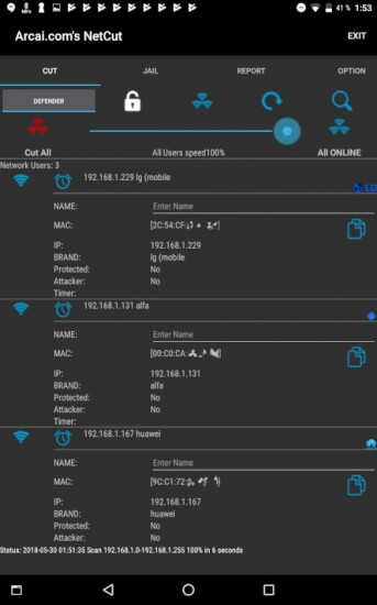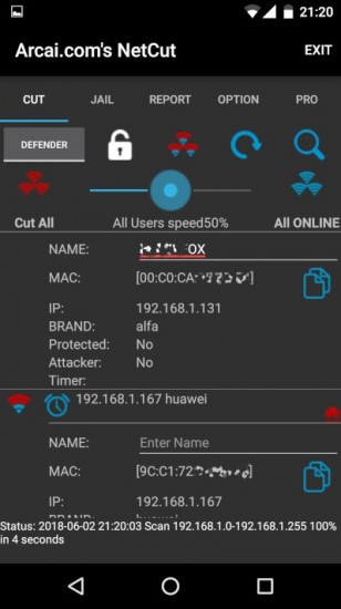 Если кто-то попытается сделать такой финт в отношении твоего девайса, NetCut определит отравление ARP-кеша и очистит его (см. NetCut Defender). За доллар в месяц можно получить аккаунт Pro, убрать рекламу и ограничения.